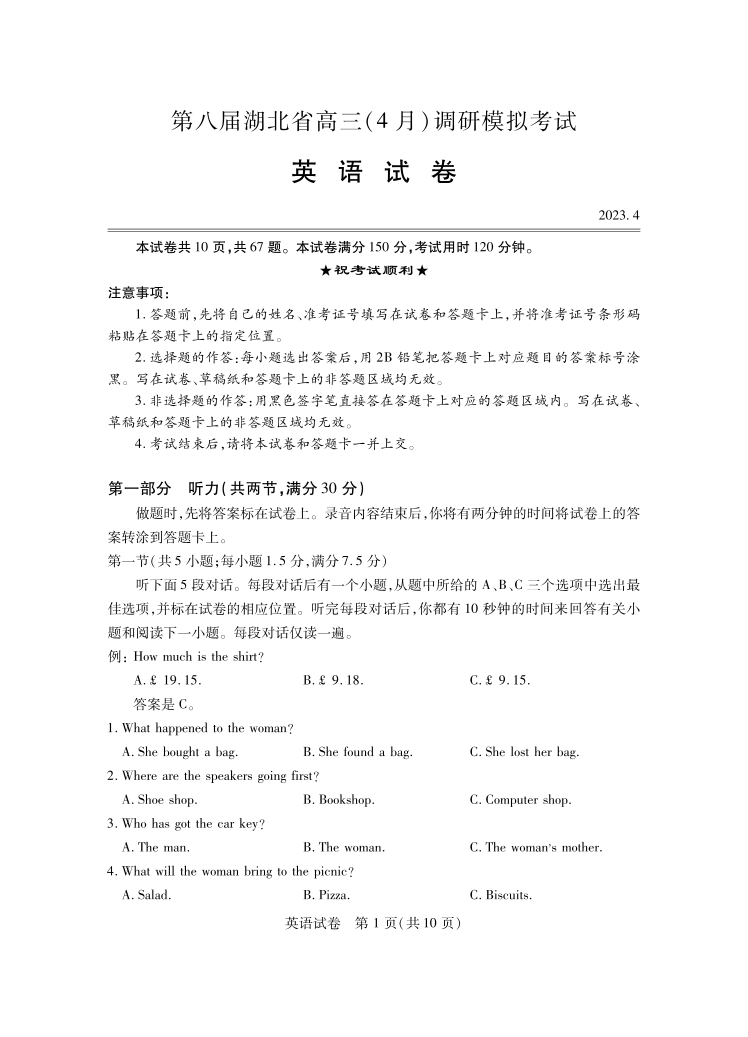 高三英语+答案--湖北省2023第八届高三(4月)调研模拟考试(全省地市联考)