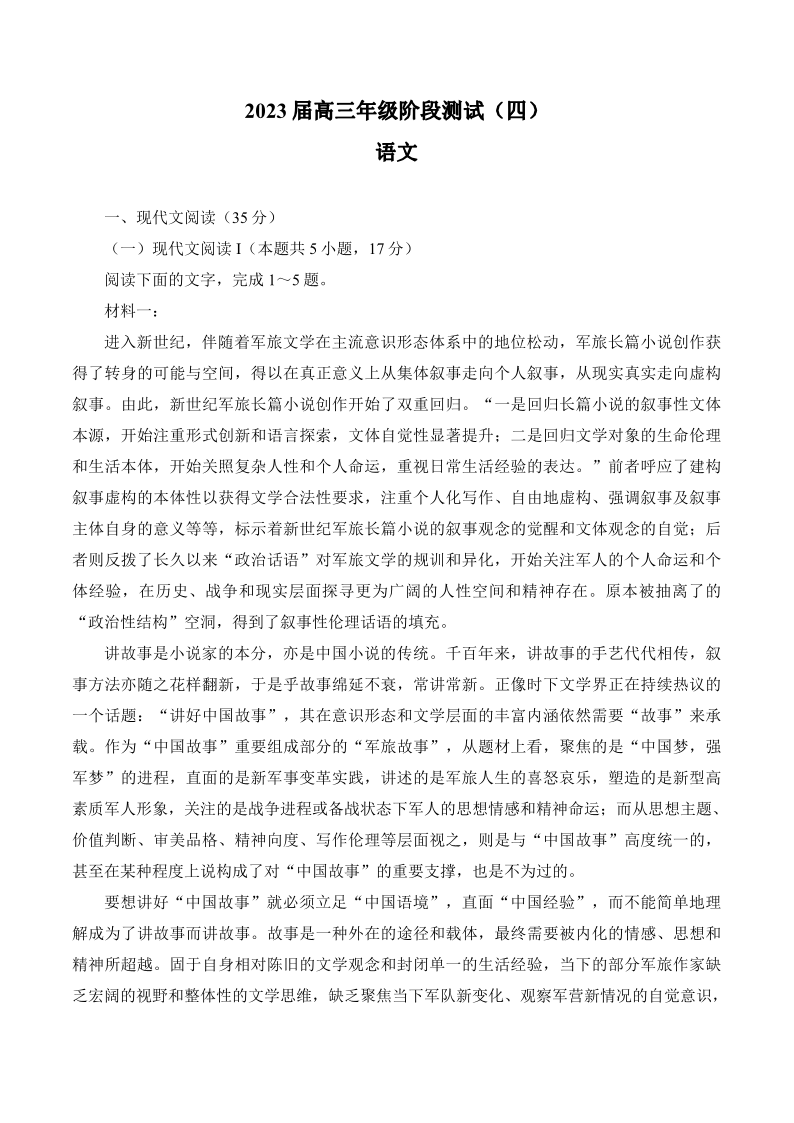 高三语文+答案--江苏省海安高级中学2023届高三年级阶段检测(四)