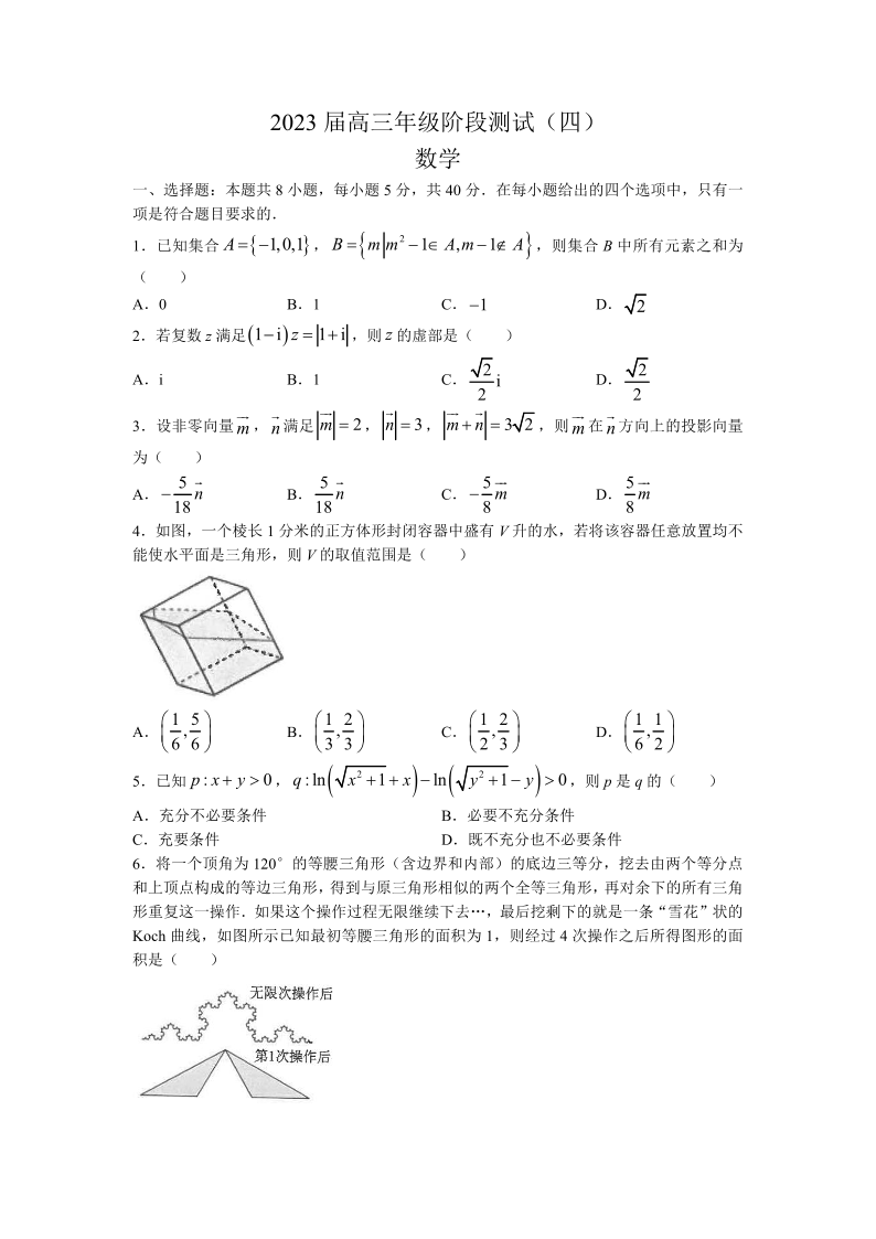 高三数学--江苏省海安高级中学2023届高三年级阶段检测(四)