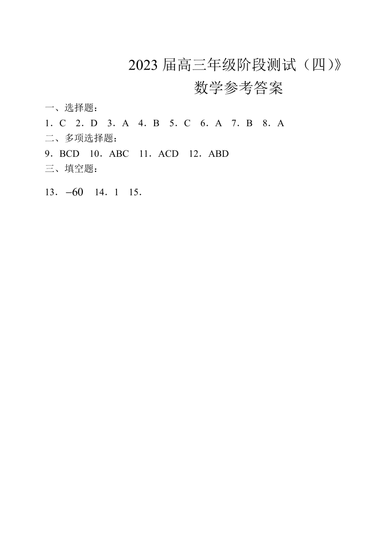 高三数学答案--江苏省海安高级中学2023届高三年级阶段检测(四)