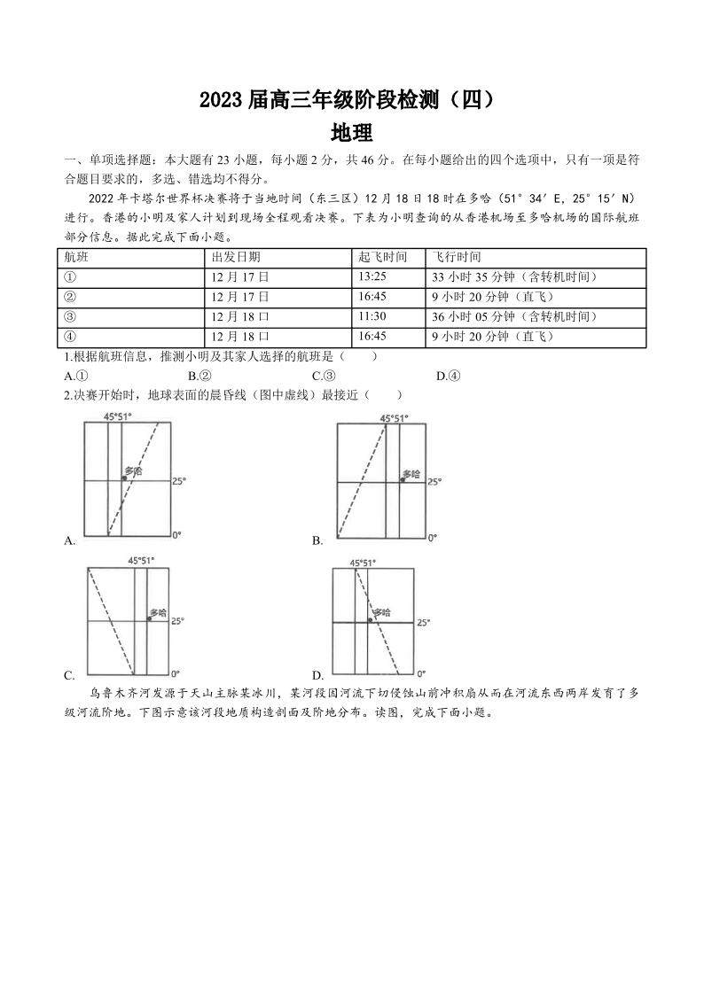 高三地理--江苏省海安高级中学2023届高三年级阶段检测(四)