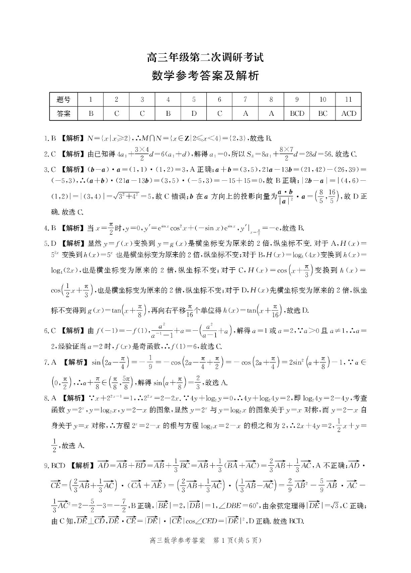 高三数学答案--河北省衡水市2026届高三上学期第二次调研考