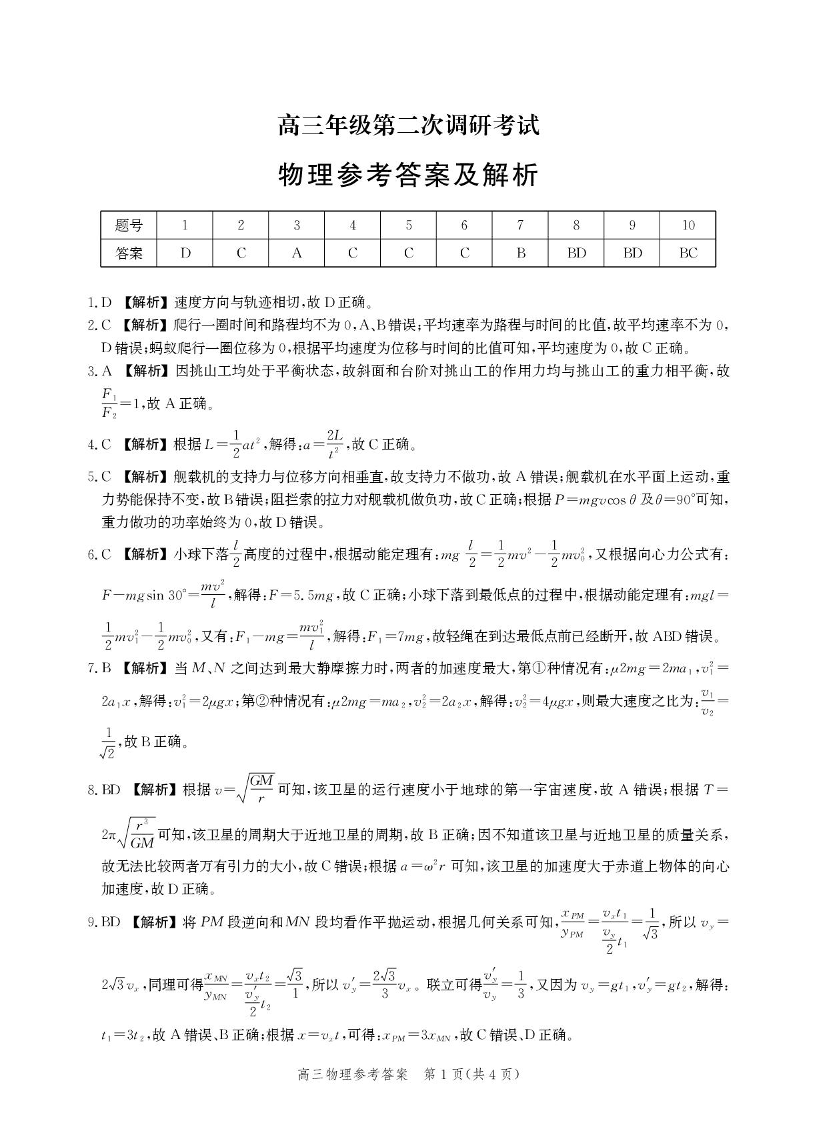 高三物理答案--河北省衡水市2026届高三上学期第二次调研考