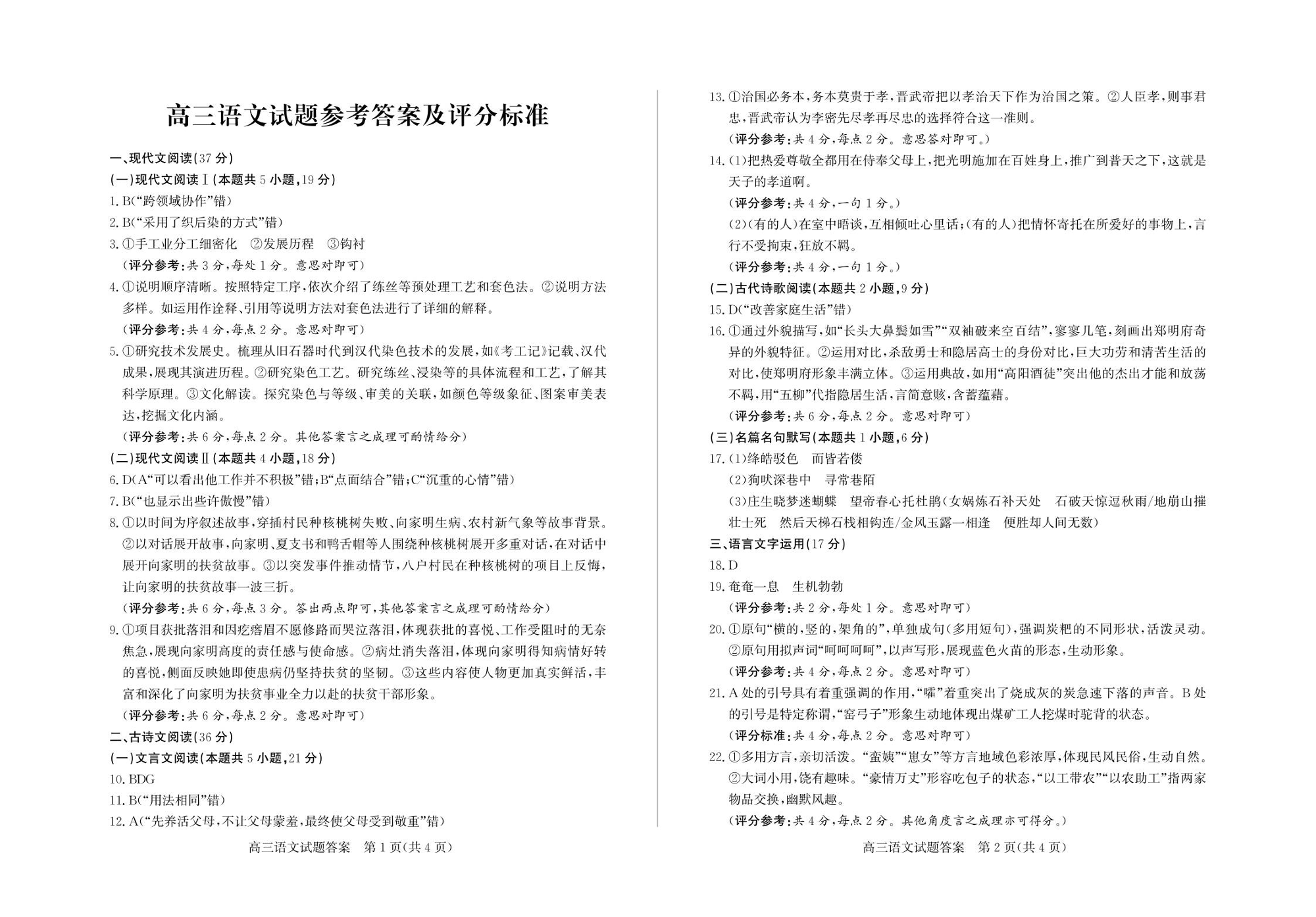 高三语文答案--山东省德州市2026届高三上学期开学考试