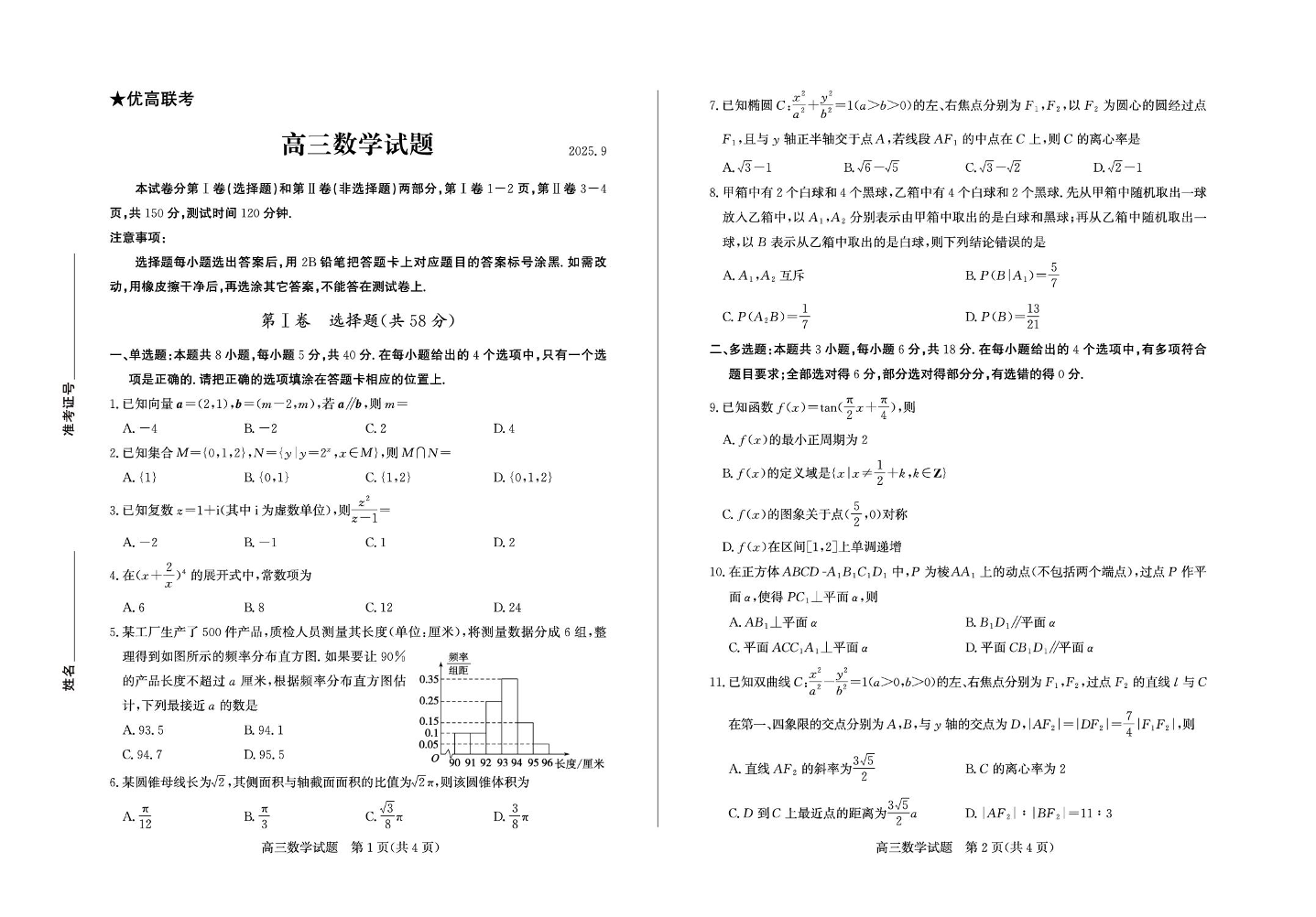 高三数学--山东省德州市2026届高三上学期开学考试