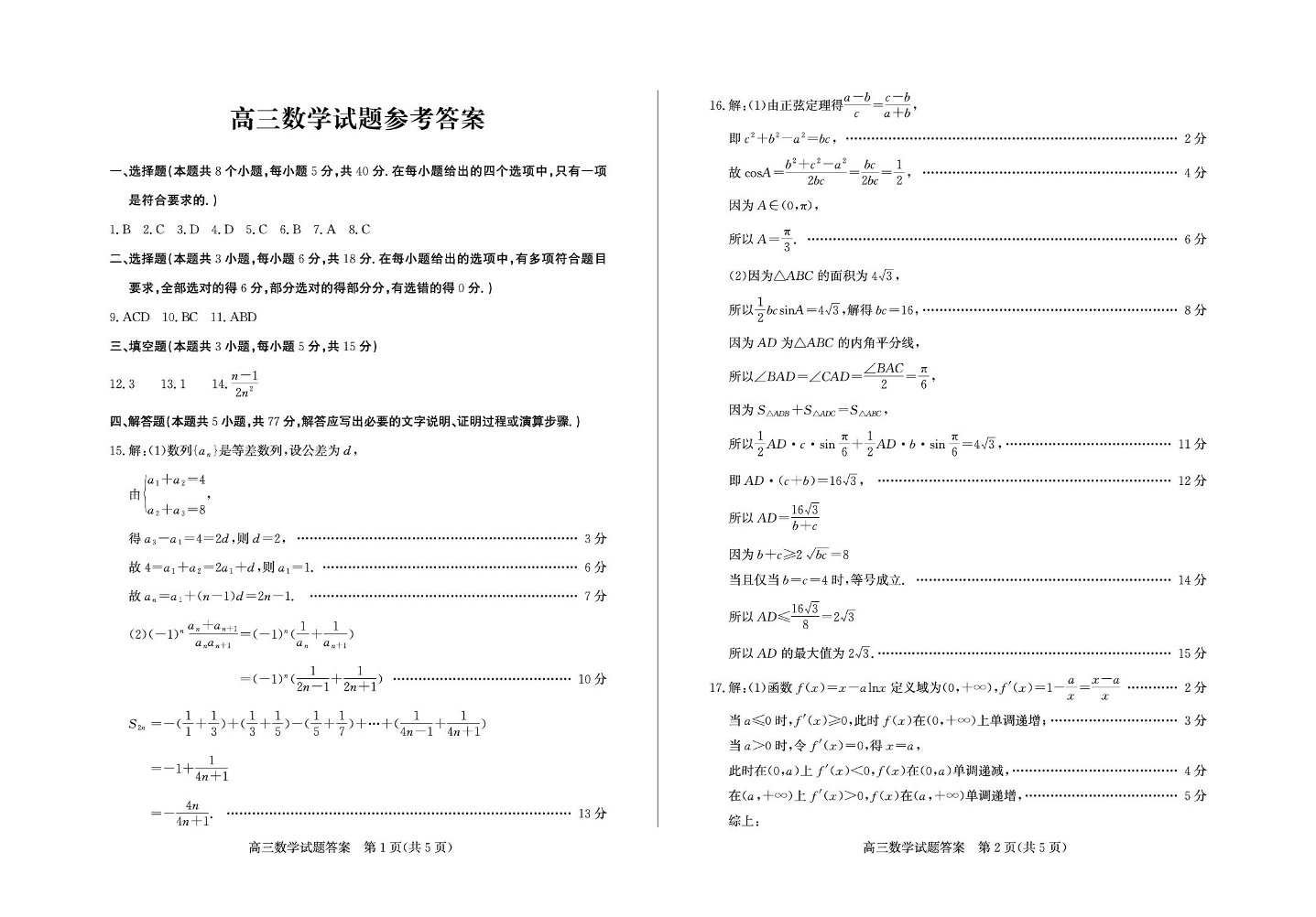 高三数学答案--山东省德州市2026届高三上学期开学考试
