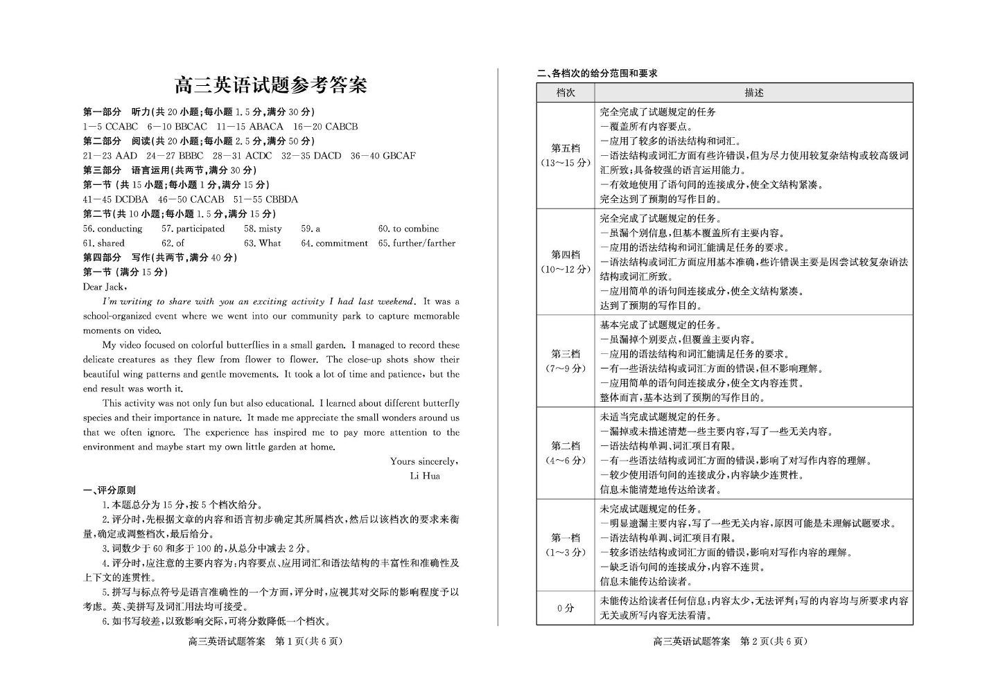 高三英语答案--山东省德州市2026届高三上学期开学考试