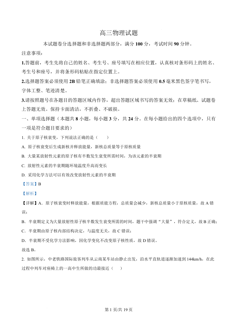 高三物理 (精品解析版)--山东省德州市2026届高三上学期开学考试