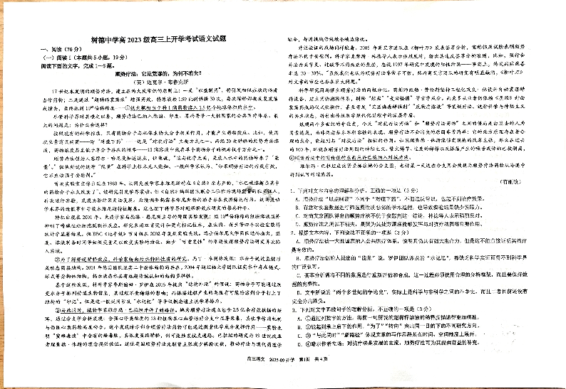 高三语文--四川省成都市树德中学高2023级高三上开学考试