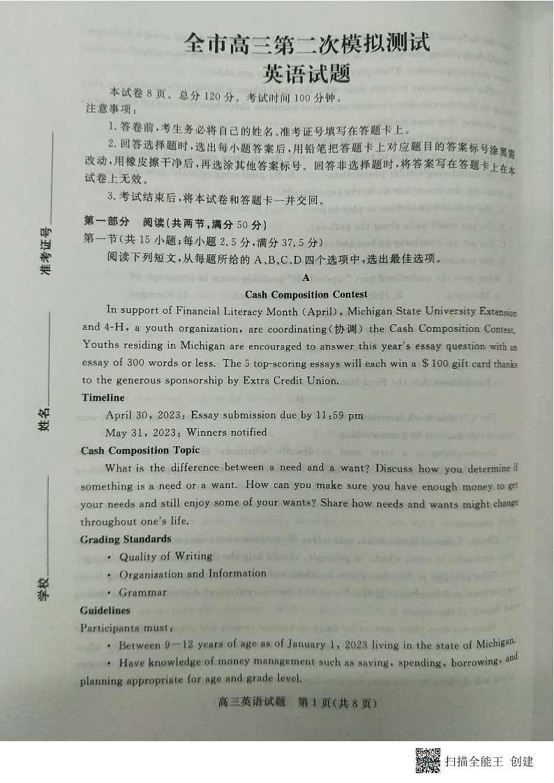 高三英语--山东省菏泽市2023届高三二模