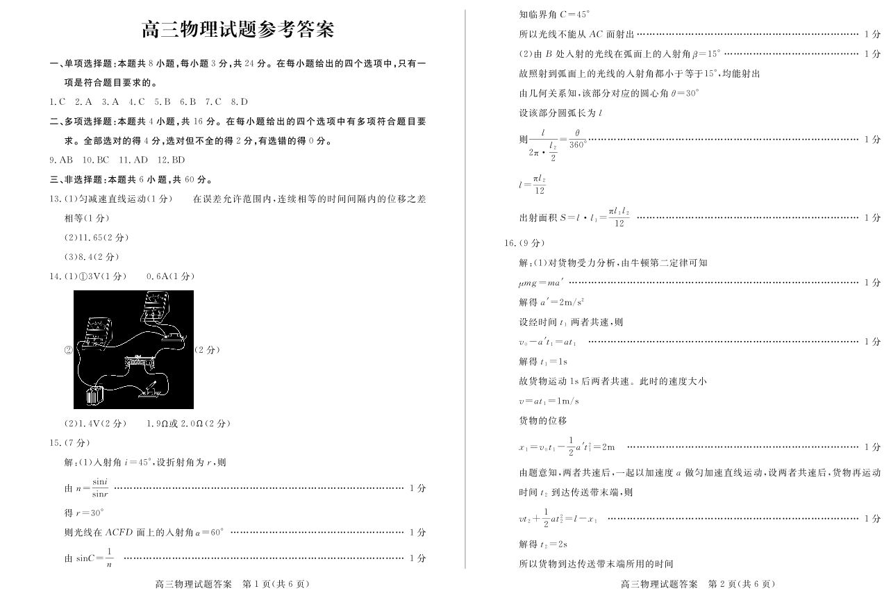 高三物理答案--山东省菏泽市2023届高三二模