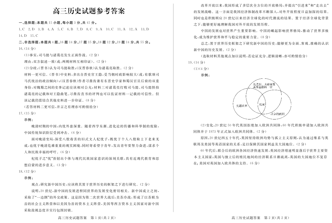高三历史答案--山东省菏泽市2023届高三二模