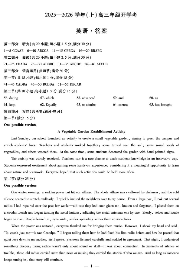 高三英语答案--河南省天一大联考2025—2026学年(上)高三年级9月开学考