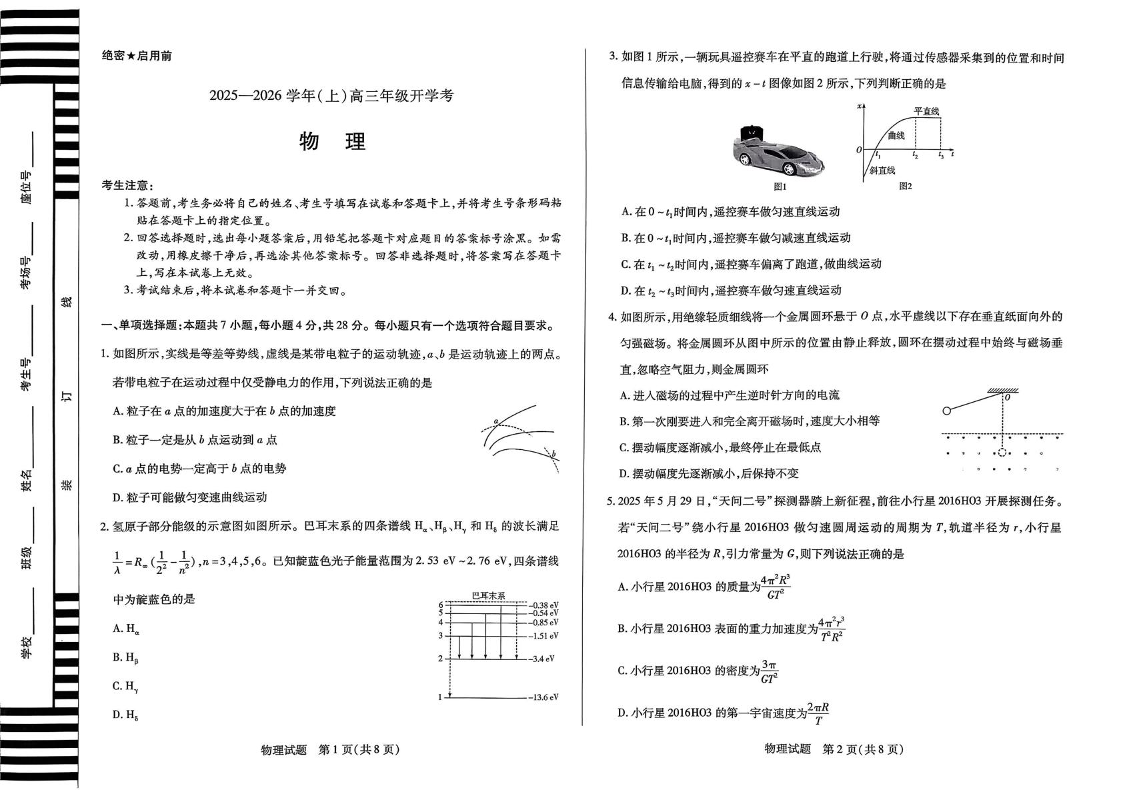 高三物理--河南省天一大联考2025—2026学年(上)高三年级9月开学考