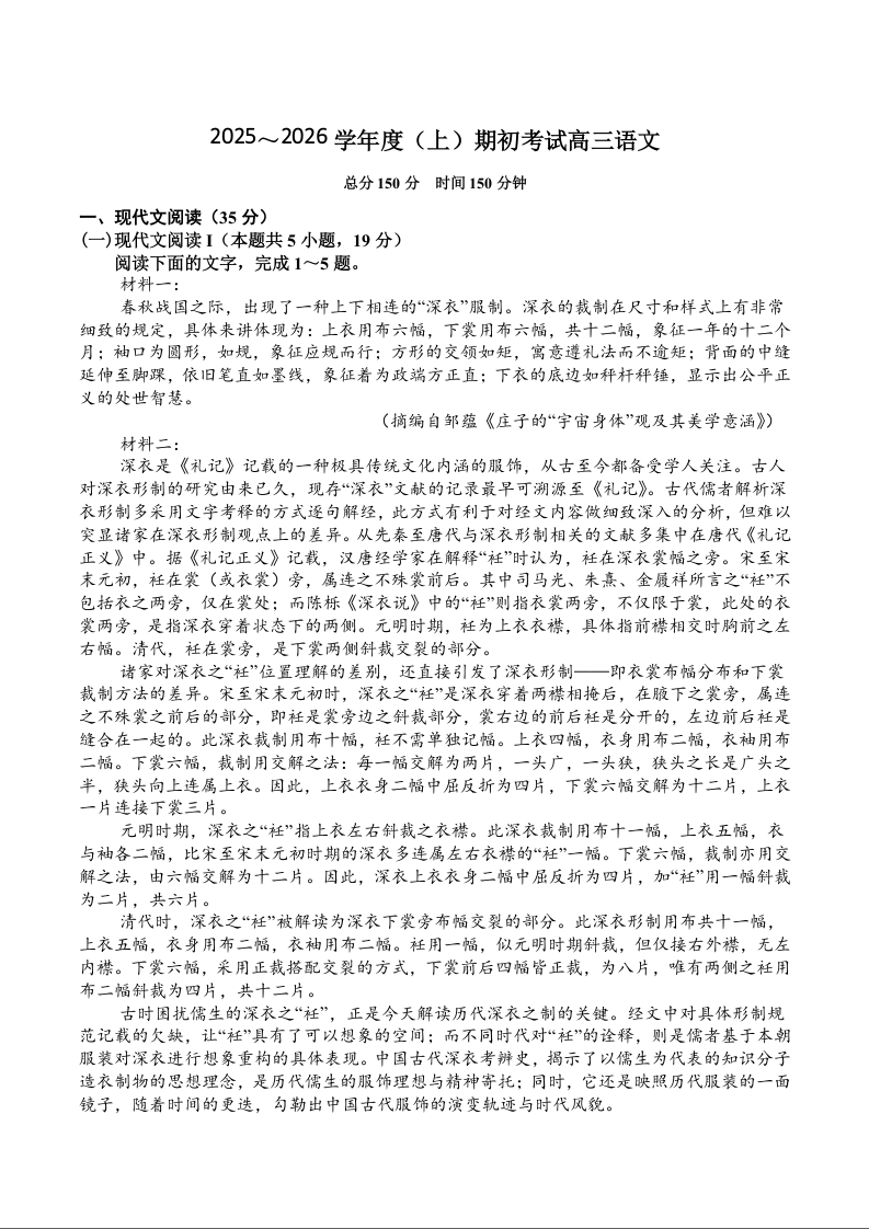 高三语文+答案--辽宁省七校协作体2026届高三上学期期初联考
