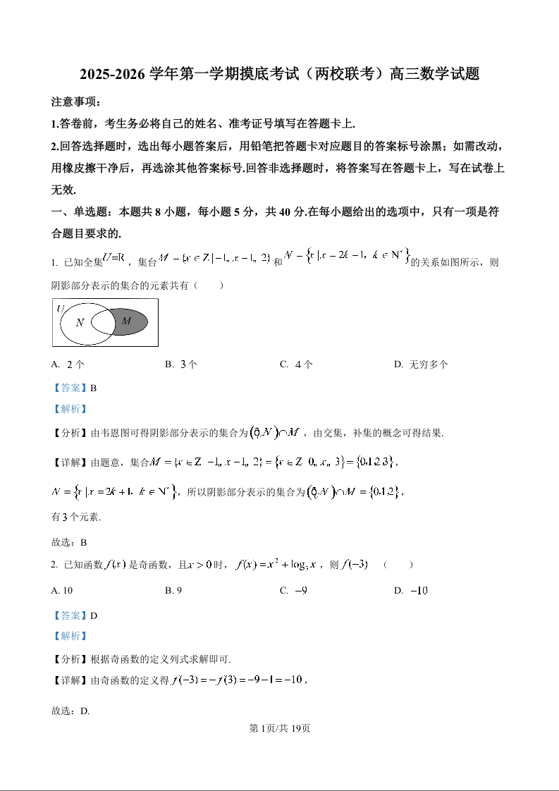 高三数学(解析版)--广东省揭阳市一中、新城惠来一中2026届高三上学期8月开学联考
