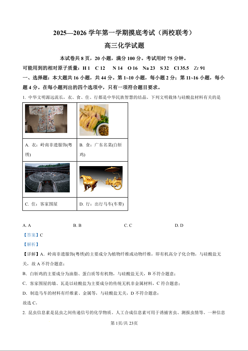 高三化学(解析版)--广东省揭阳市一中、新城惠来一中2026届高三上学期8月开学联考