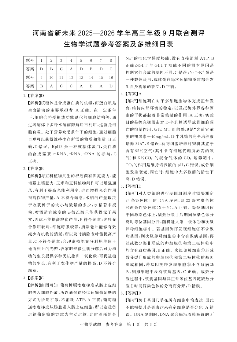 高三生物答案--河南省新未来2026届高三年级上学期9月份联合测评