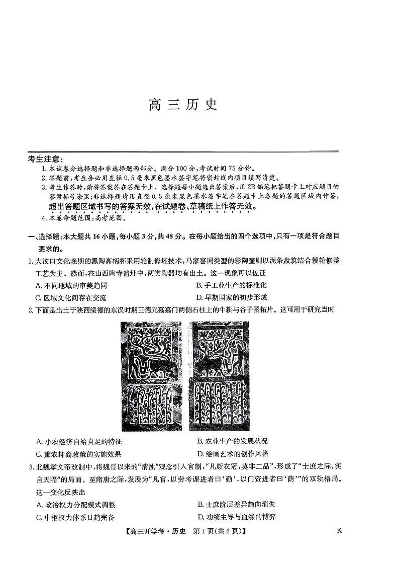 高三历史+答案--九师联盟2026届高三9月开学考试
