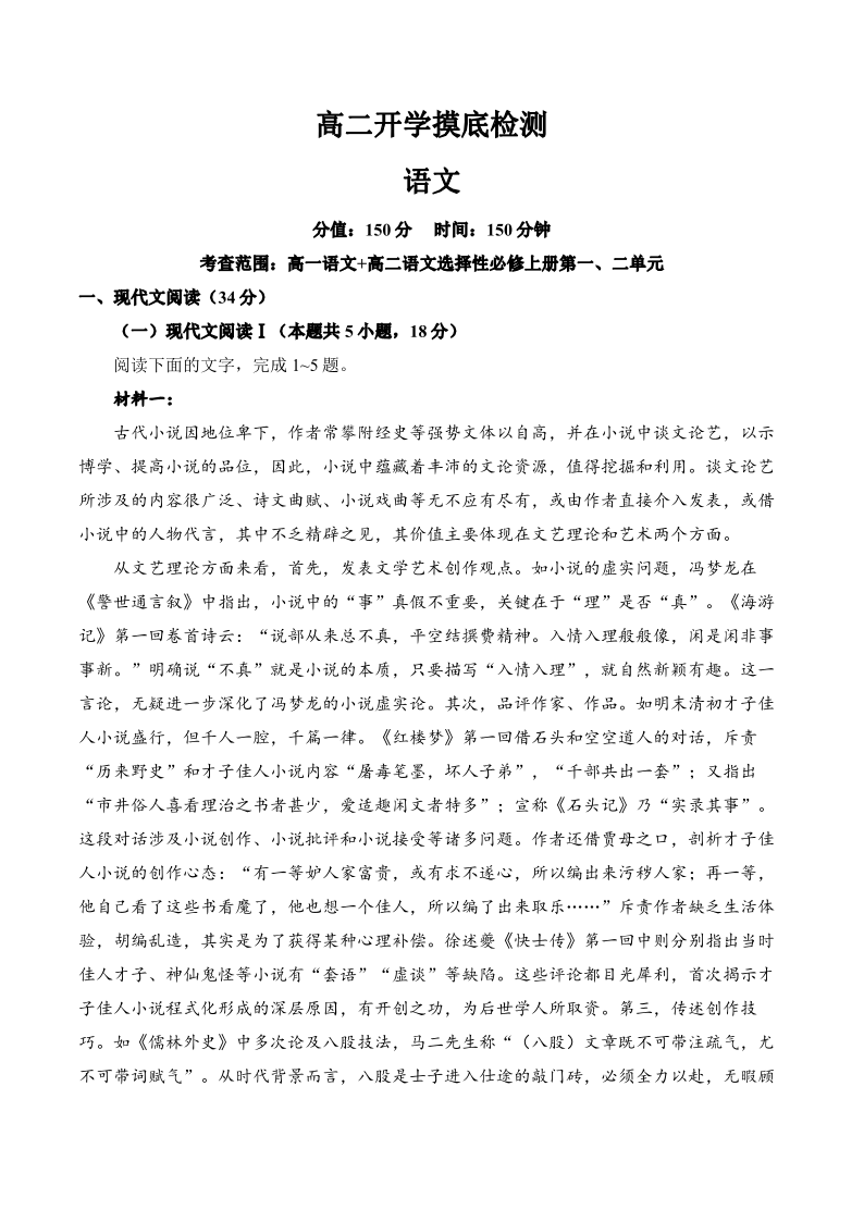 高二语文+答案--安徽省阜阳市临泉县第二中学2025-2026学年高二上学期开学考试