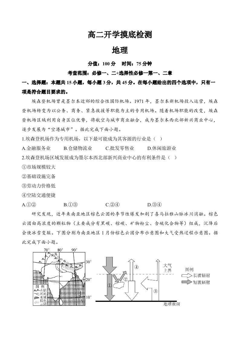 高二地理+答案--安徽省阜阳市临泉县第二中学2025-2026学年高二上学期开学考试
