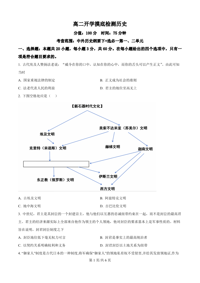 高二历史(原卷版)--安徽省阜阳市临泉县田家炳实验中学(临泉县教师进修学校)2025-2026学年高二上学期开学考试