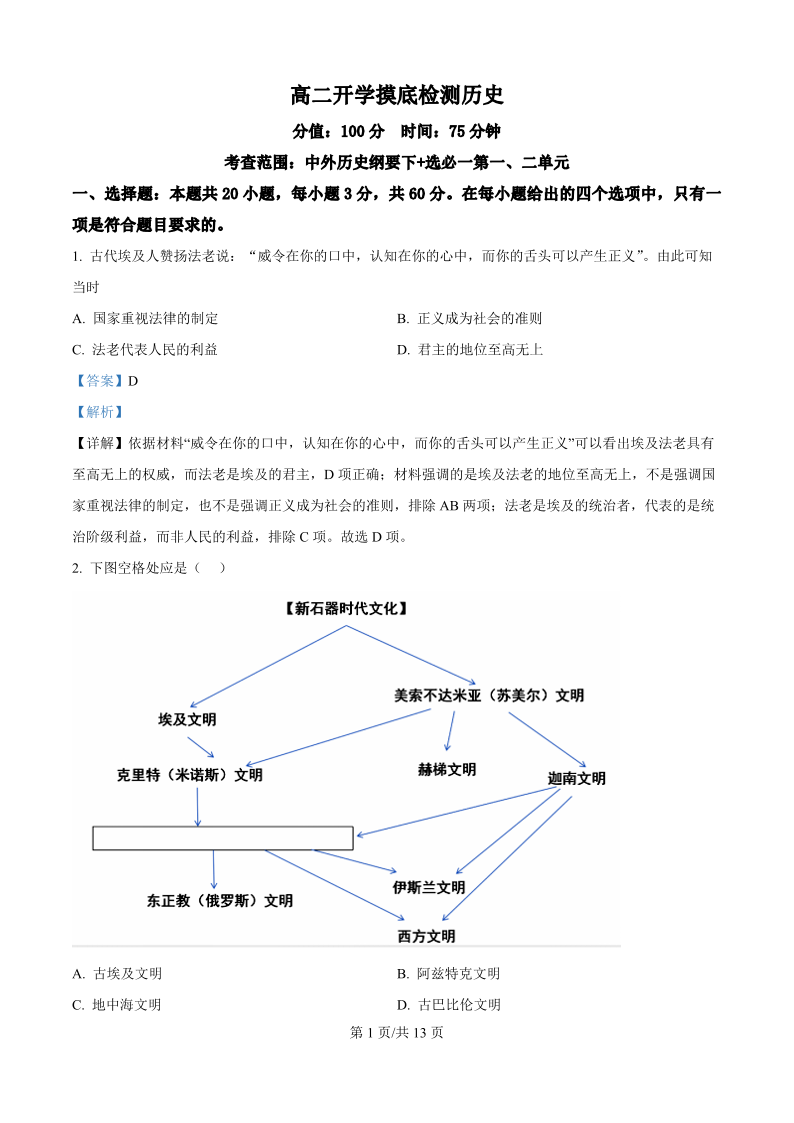 高二历史(精品解析版)--安徽省阜阳市临泉县田家炳实验中学(临泉县教师进修学校)2025-2026学年高二上学期开学考试