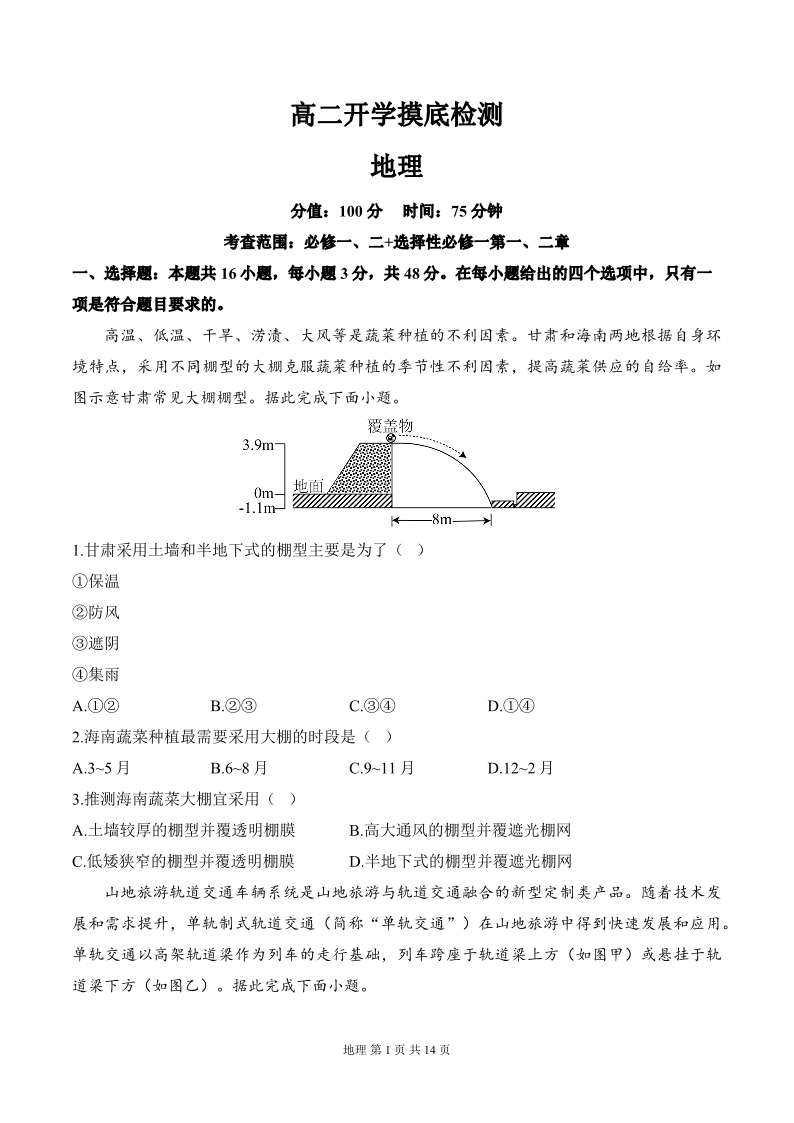 高二地理+答案--安徽省阜阳市临泉县田家炳实验中学(临泉县教师进修学校)2025-2026学年高二上学期开学考试