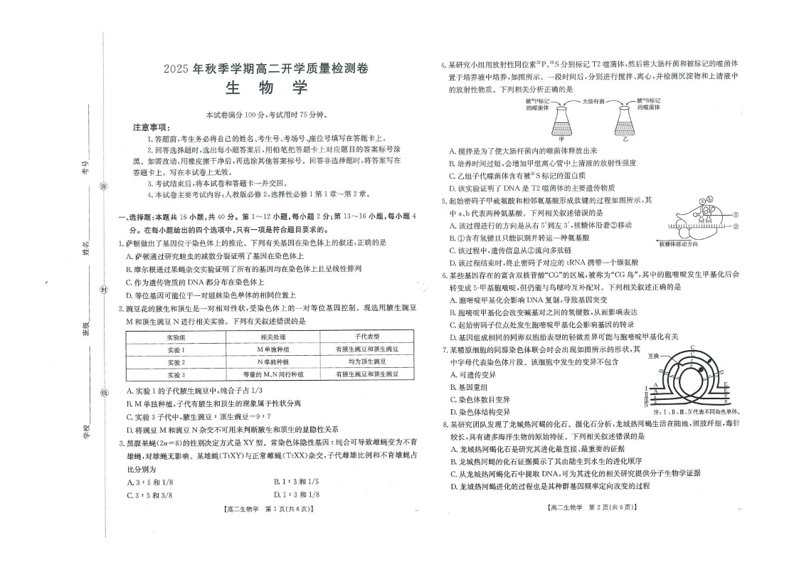 高二生物+答案--广西部分学校2025-2026学年高二上学期8月开学质量检测