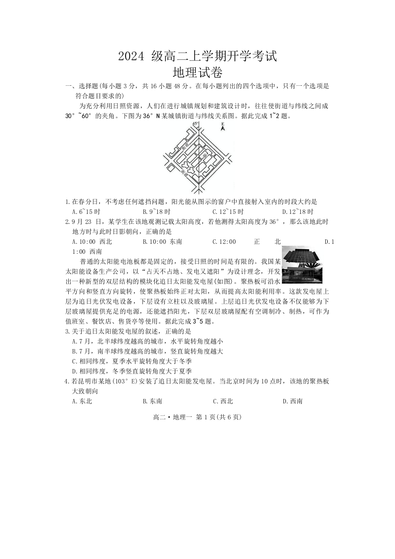 高二地理--河北省保定市部分高中2025-2026学年高二上学期开学考试