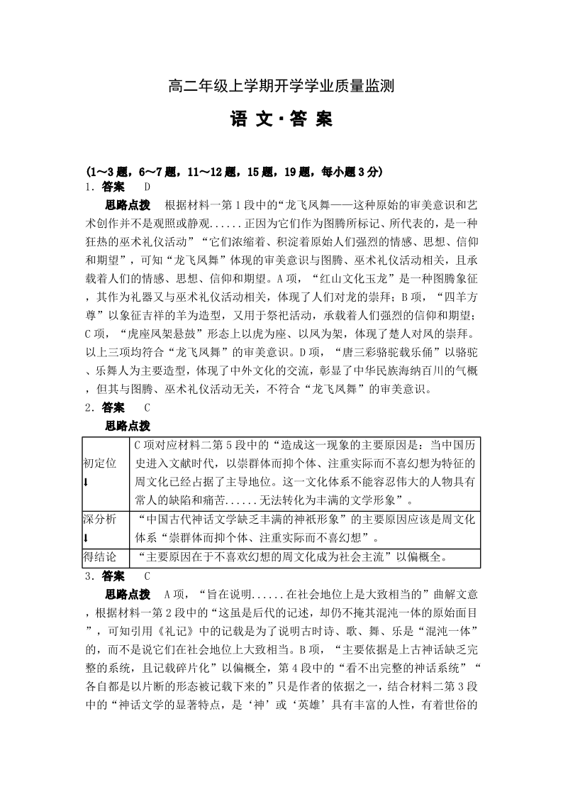 高二语文答案--河南省部分学校2025-2026学年高二上学期开学考试