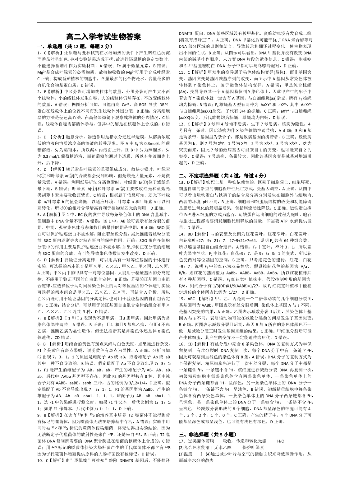 高三生物答案--湖南省邵阳市第二中学2025-2026学年高二上学期入学考试