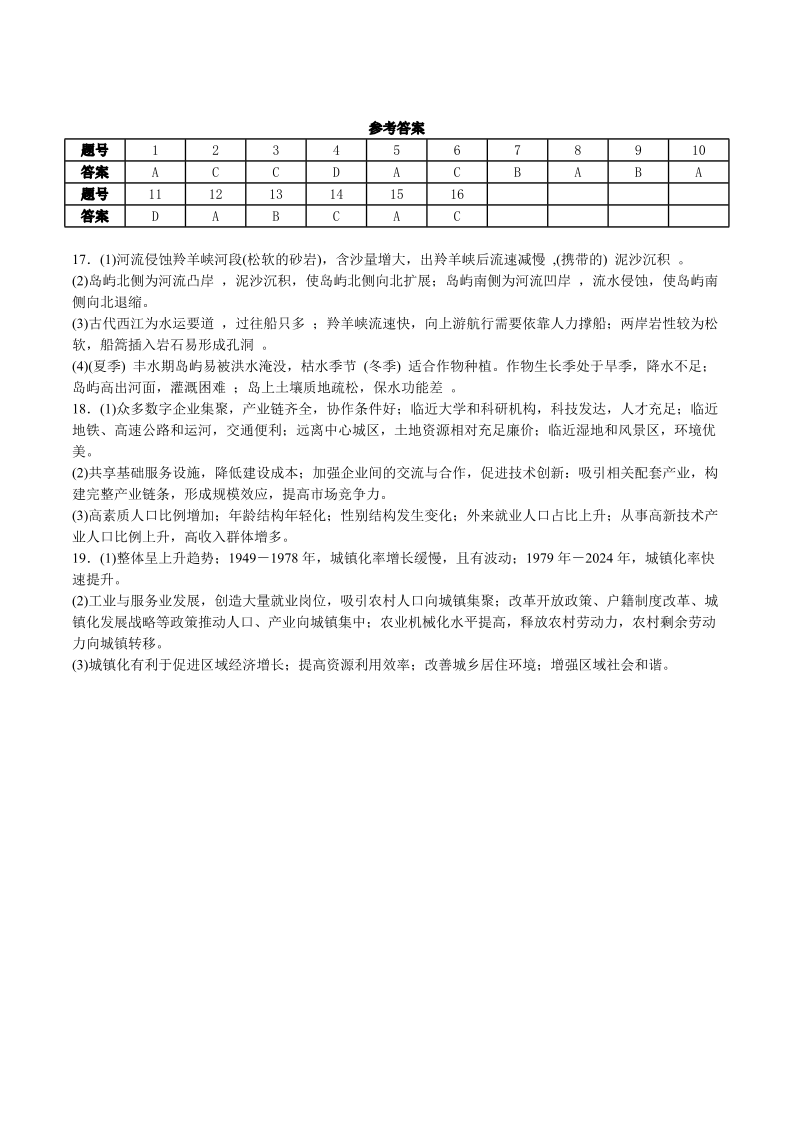 高三地理答案--湖南省邵阳市第二中学2025-2026学年高二上学期入学考试