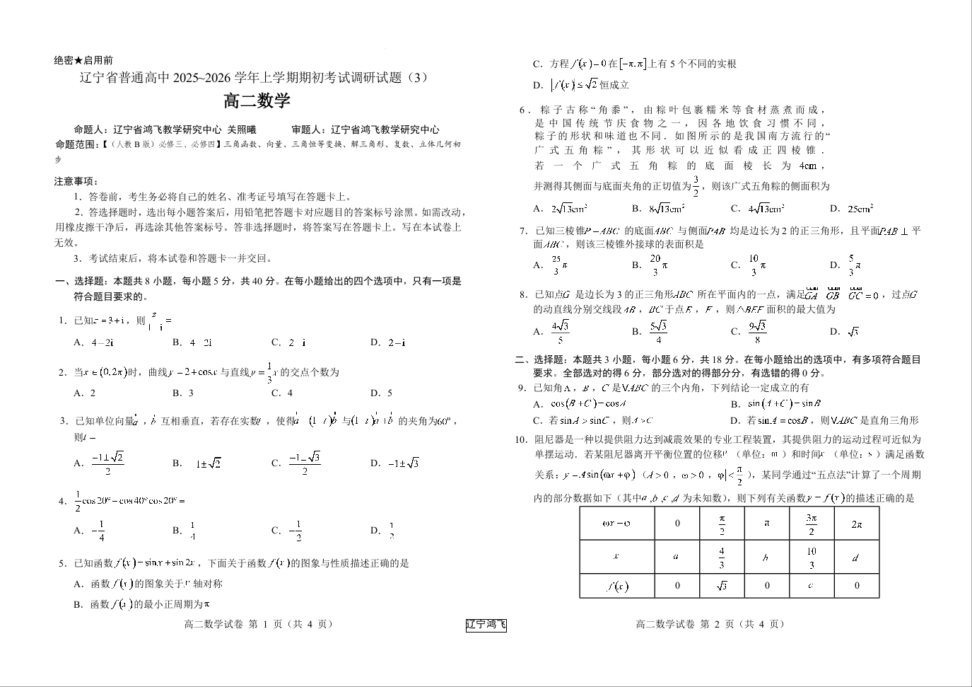 高二数学(3)--辽宁省普通高中2025-2026学年高二上学期期初开学考试
