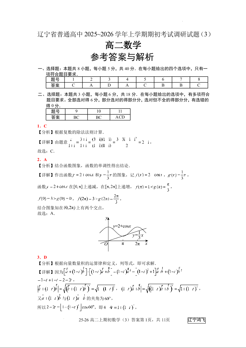 高二数学(3)答案--辽宁省普通高中2025-2026学年高二上学期期初开学考试