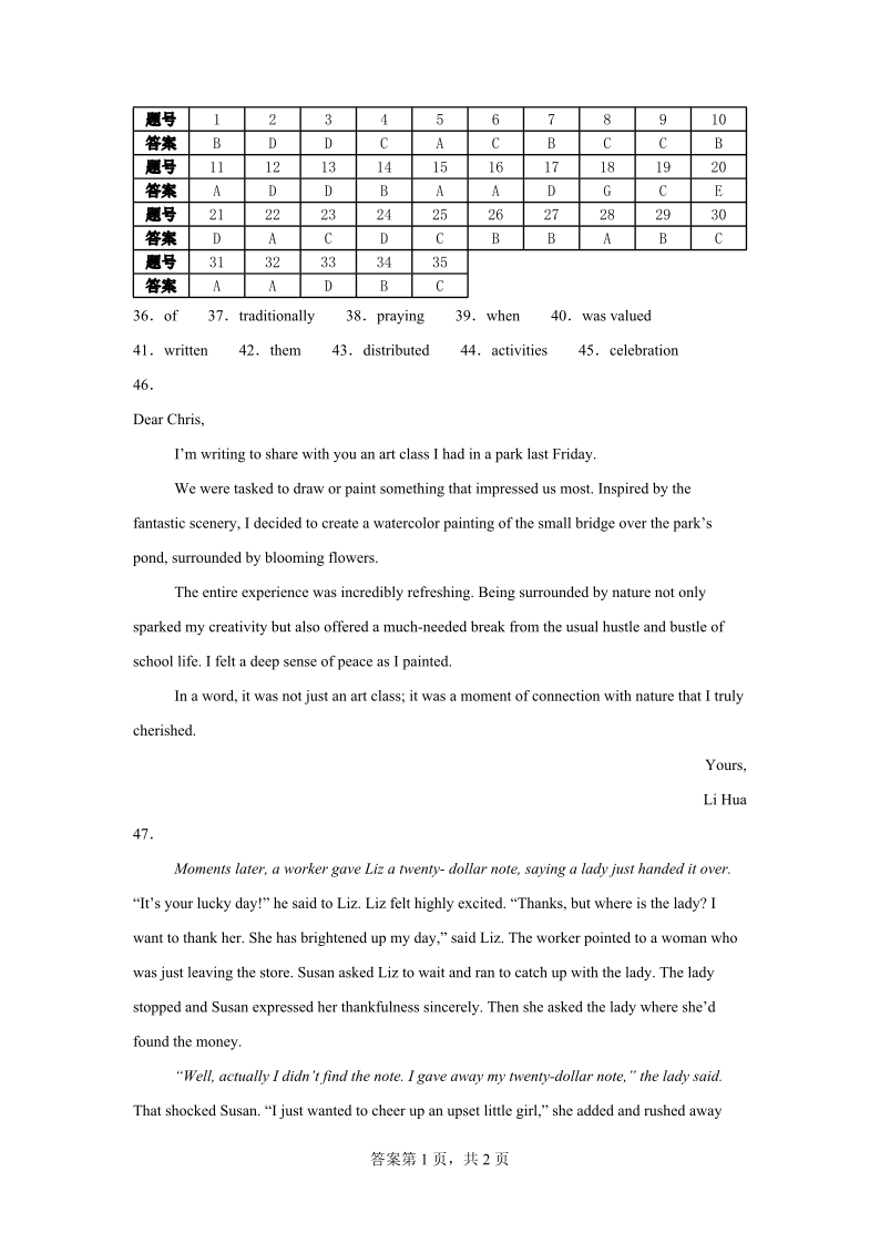 高二英语答案--宁夏石嘴山市第一中学2025-2026学年高二上学期开学考试试题
