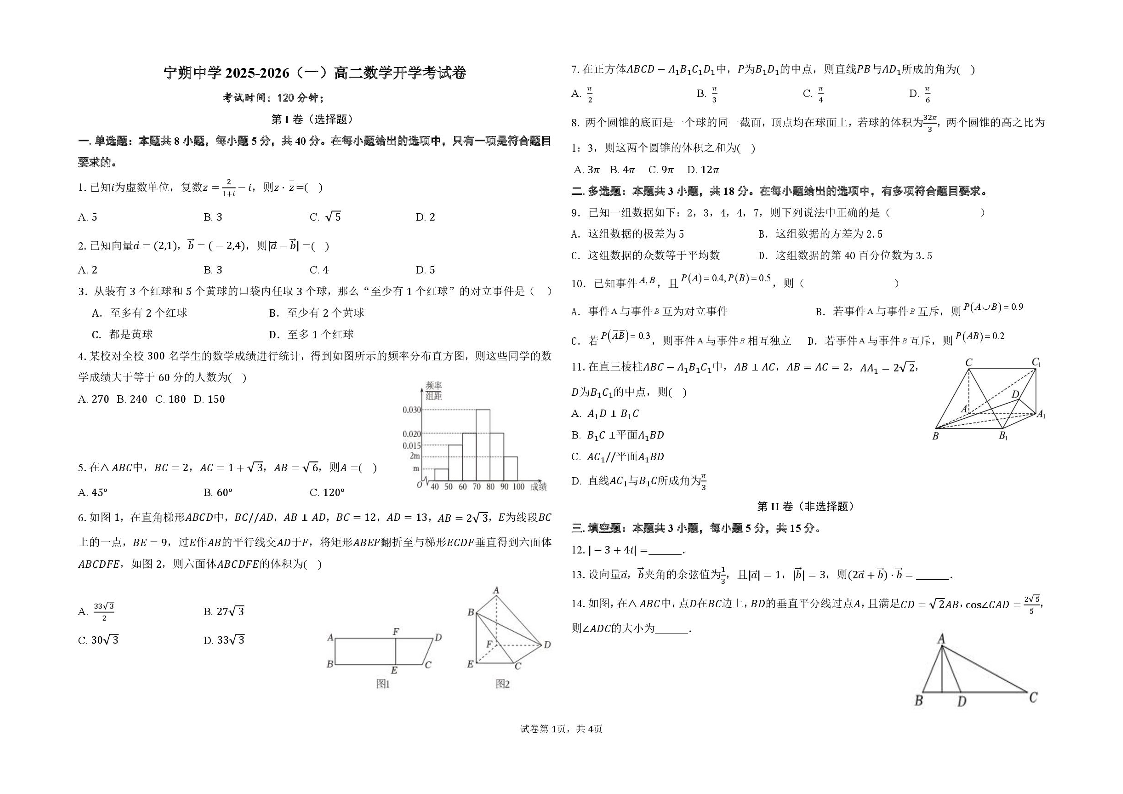 高二数学答案--宁夏吴忠市青铜峡市宁朔中学2025-2026学年高二上学期开学考试
