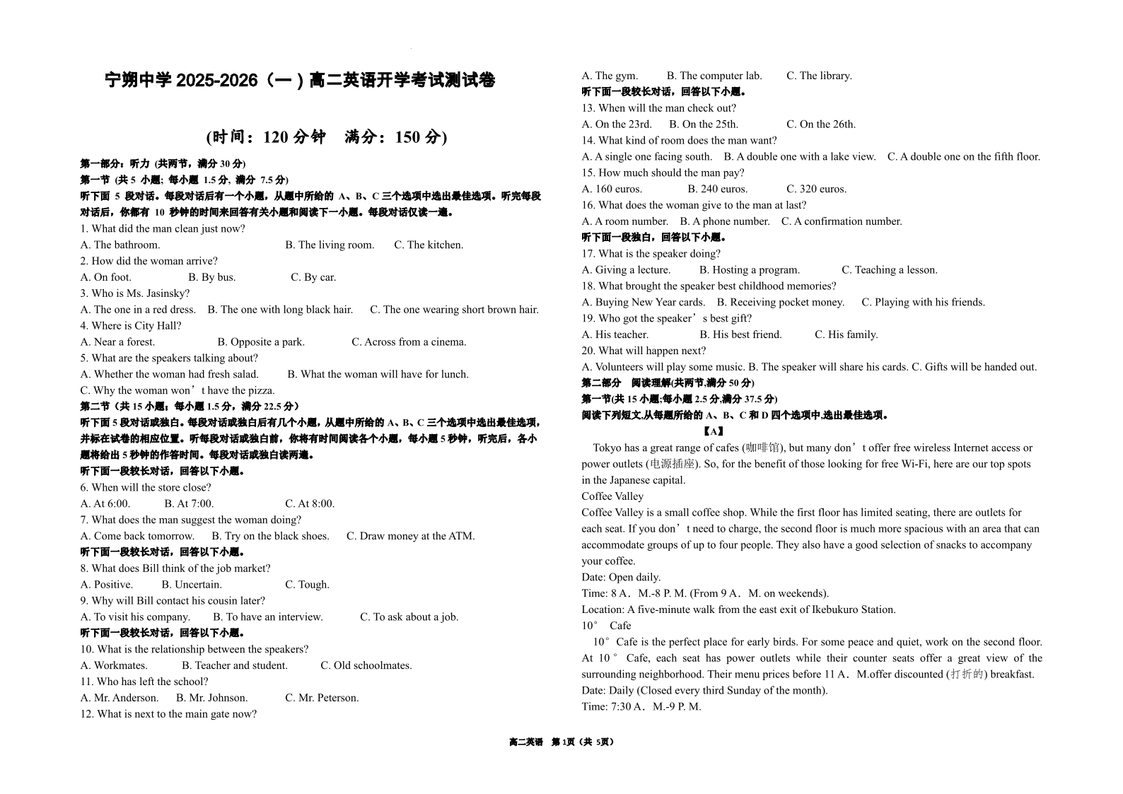 高二英语+答案--宁夏吴忠市青铜峡市宁朔中学2025-2026学年高二上学期开学考试