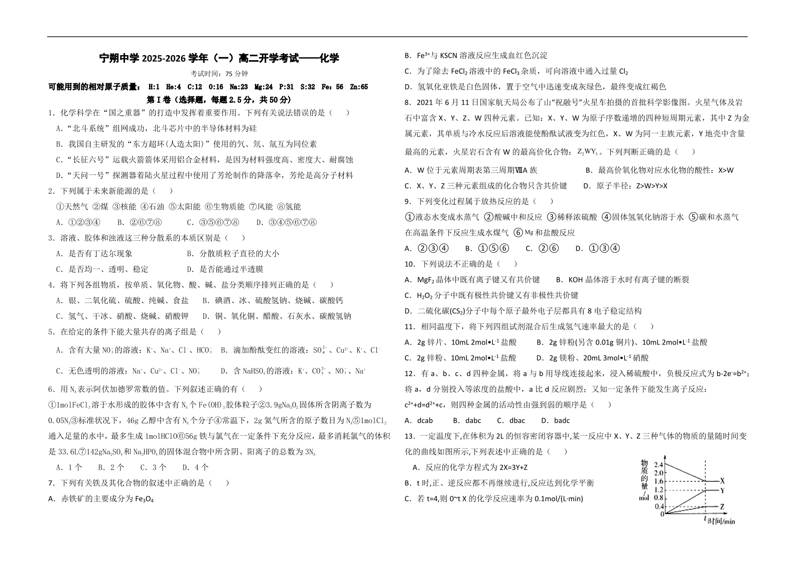 高二化学--宁夏吴忠市青铜峡市宁朔中学2025-2026学年高二上学期开学考试