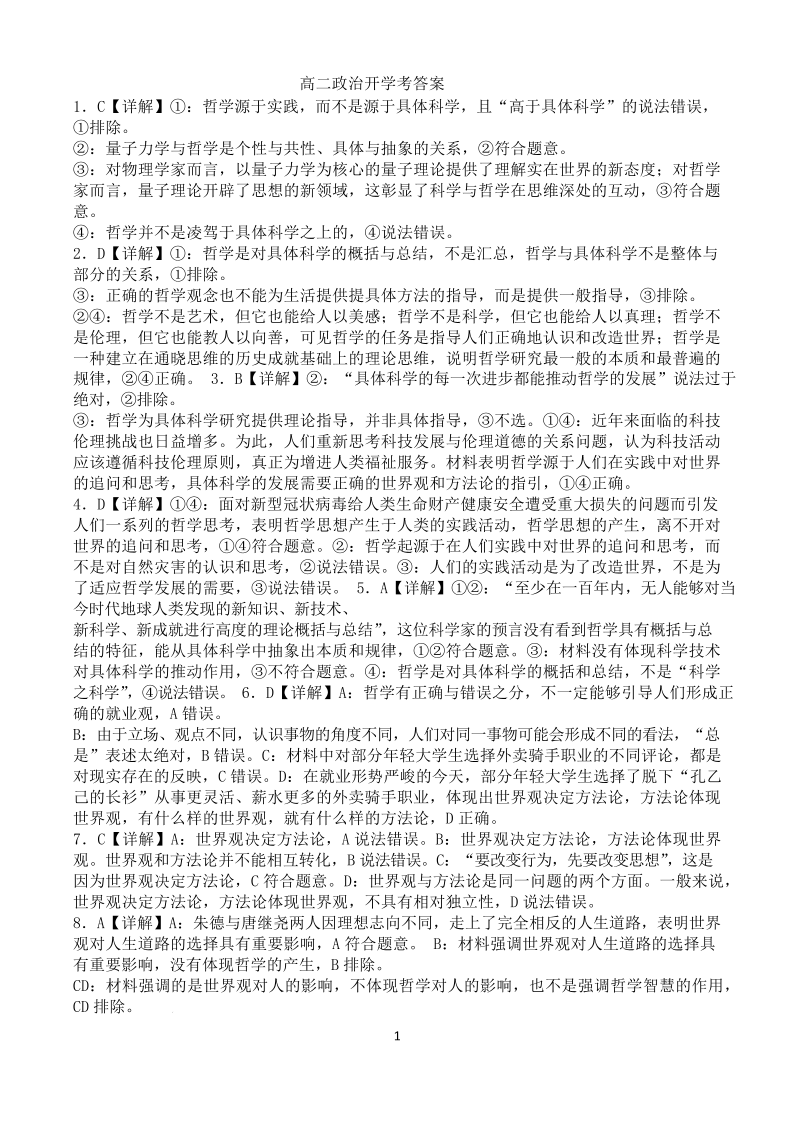高二政治答案--山东省德州市夏津第一中学2025-2026学年高二上学期开学考试