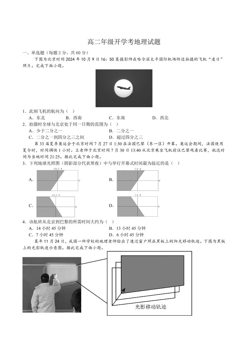 高二地理+答案--山东省德州市夏津第一中学2025-2026学年高二上学期开学考试