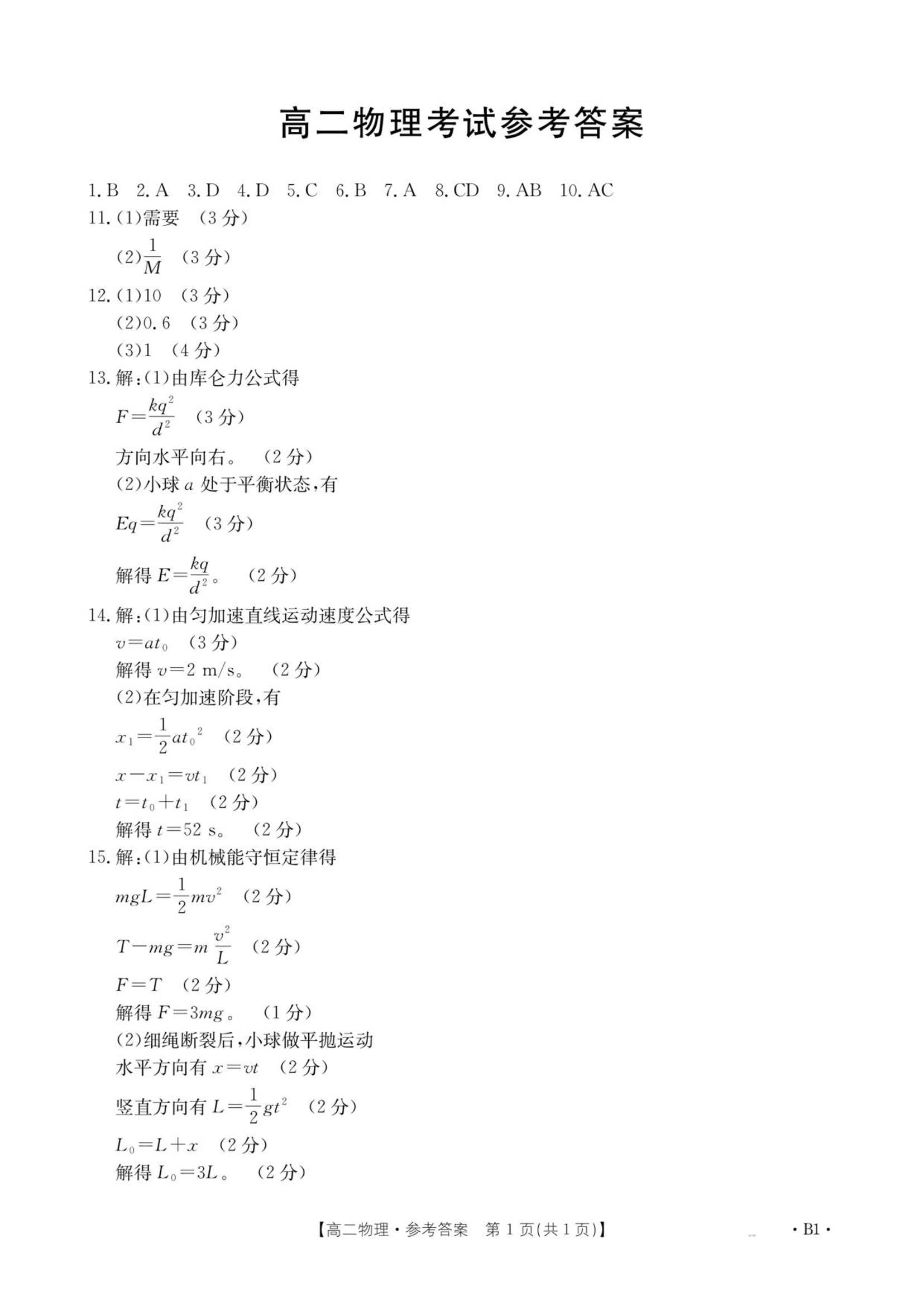 高二物理答案--云南省部分学校2025-2026学年高二上学期8月联考