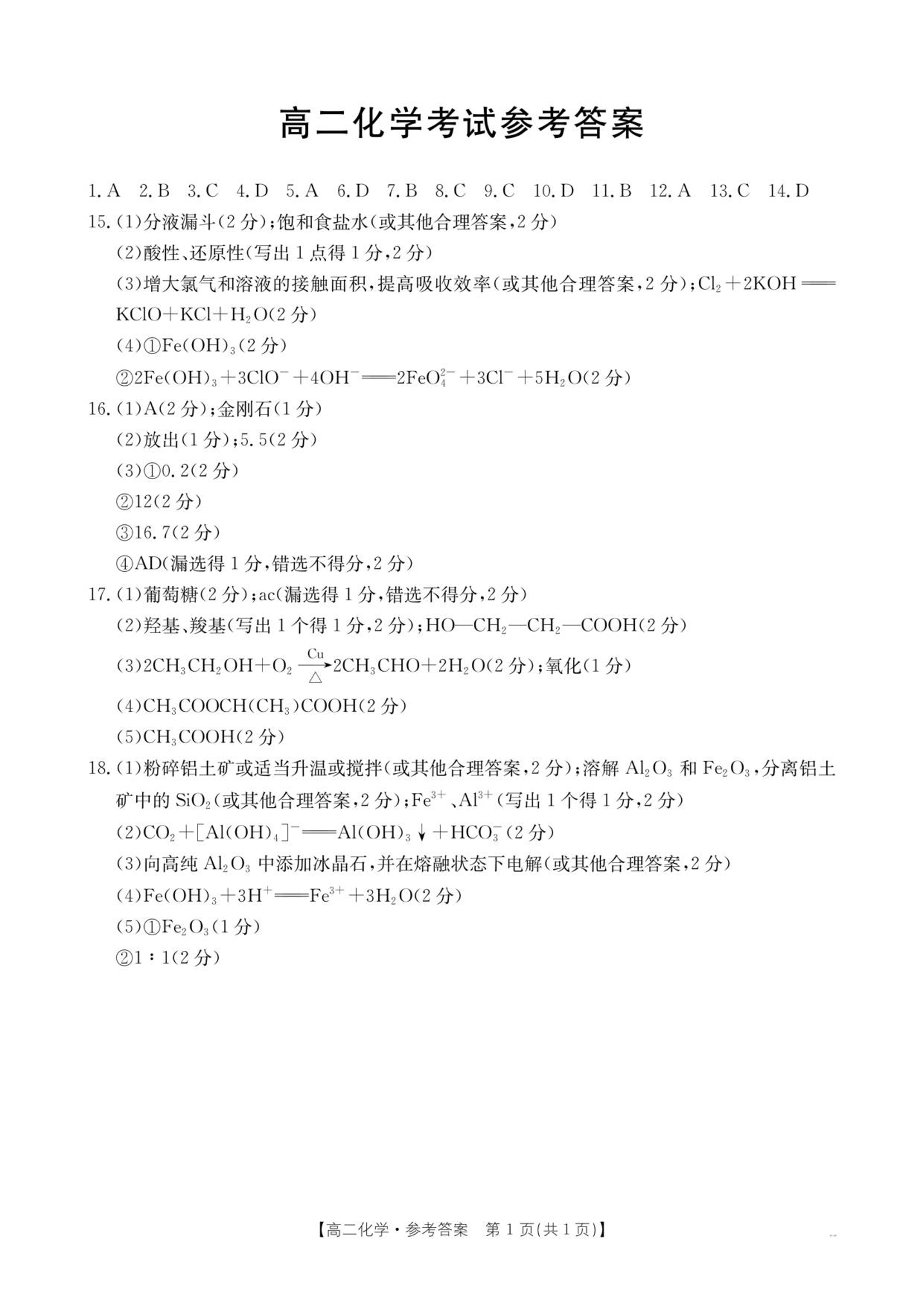 高二化学答案--云南省部分学校2025-2026学年高二上学期8月联考