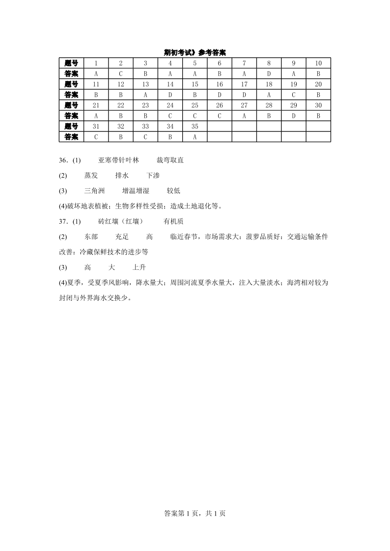 高二地理答案--浙江省宁波市北仑中学2025-2026学年高二上学期返校考试