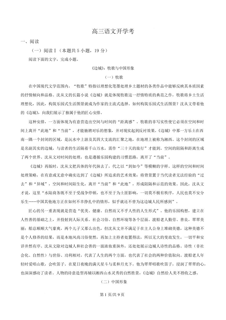 高三语文(原卷版)--吉林省通化市梅河口市第五中学2026届高三上学期9月开学考试