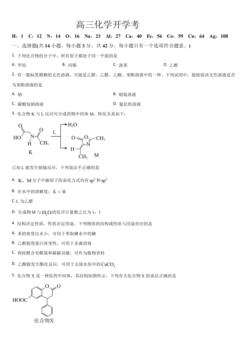 高三化学+答案--吉林省通化市梅河口市第五中学2026届高三上学期9月开学考试