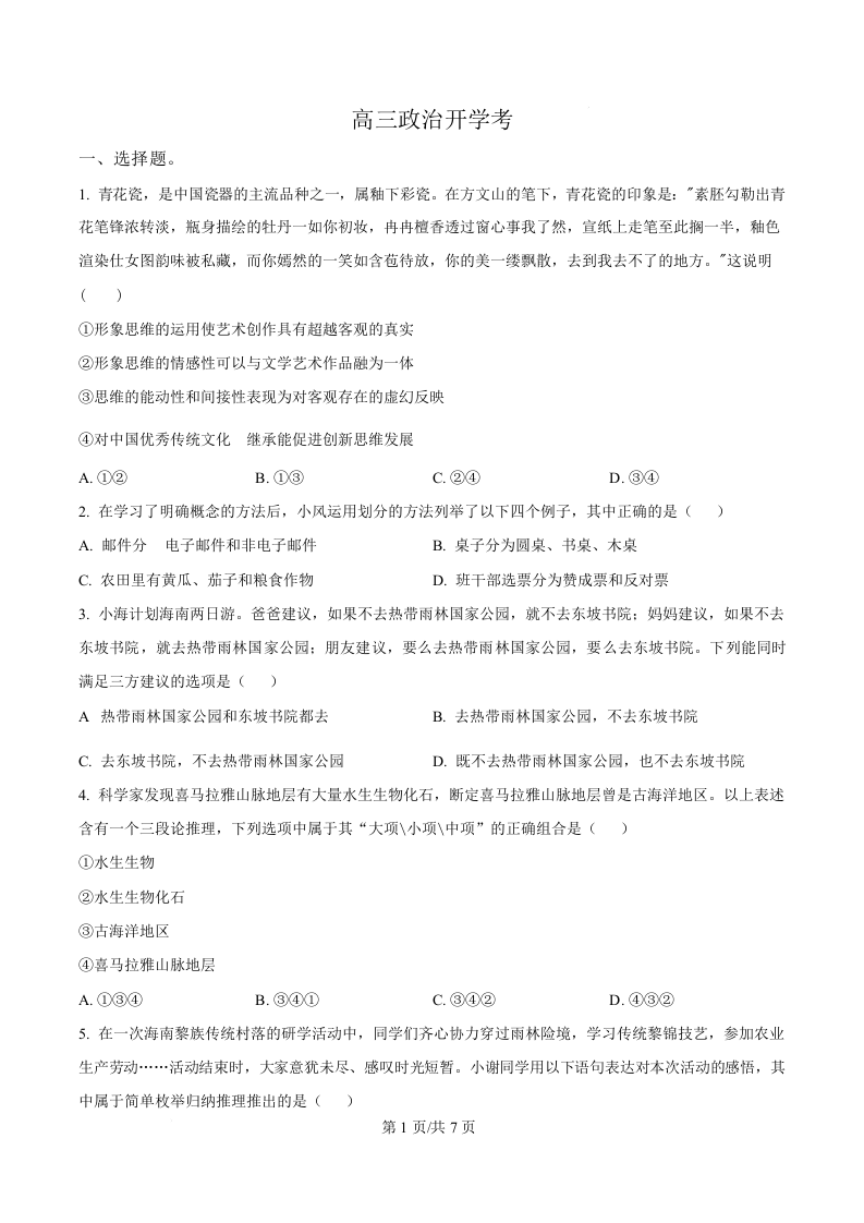 高三政治(原卷版)--吉林省通化市梅河口市第五中学2026届高三上学期9月开学考试
