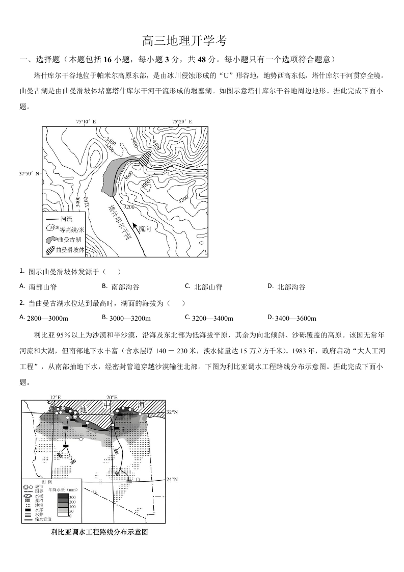 高三地理+答案--吉林省通化市梅河口市第五中学2026届高三上学期9月开学考试