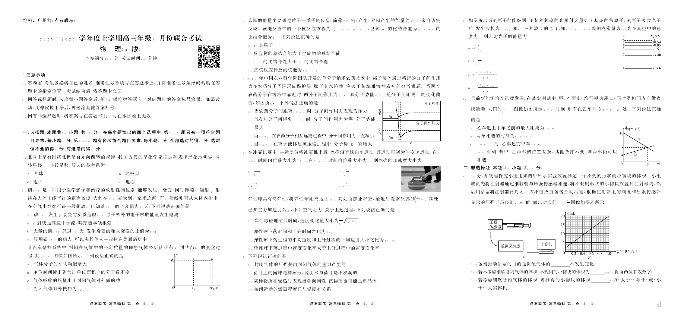 高三物理B版--辽宁省点石联考2026届高三9月份联合考试