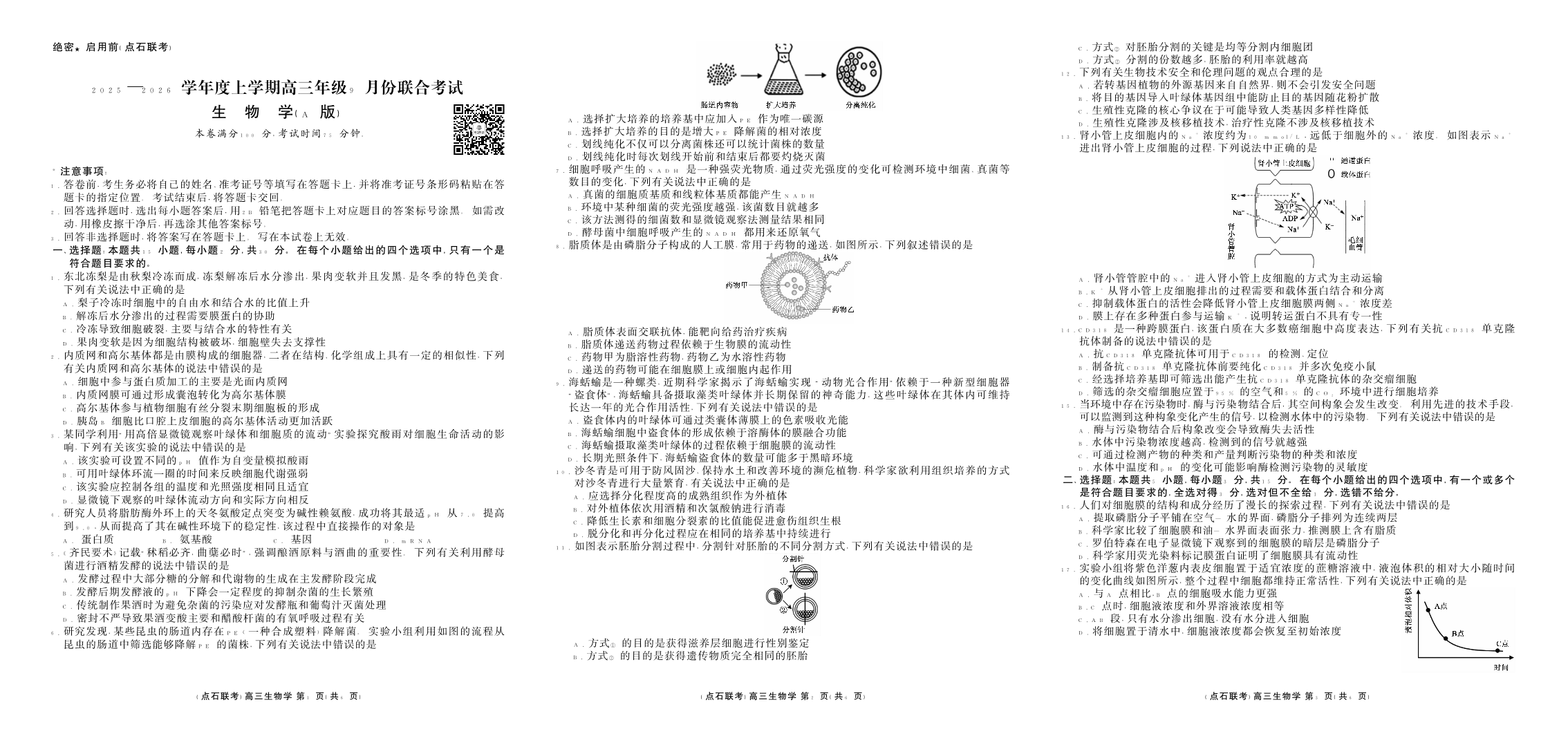 高三生物A版--辽宁省点石联考2026届高三9月份联合考试
